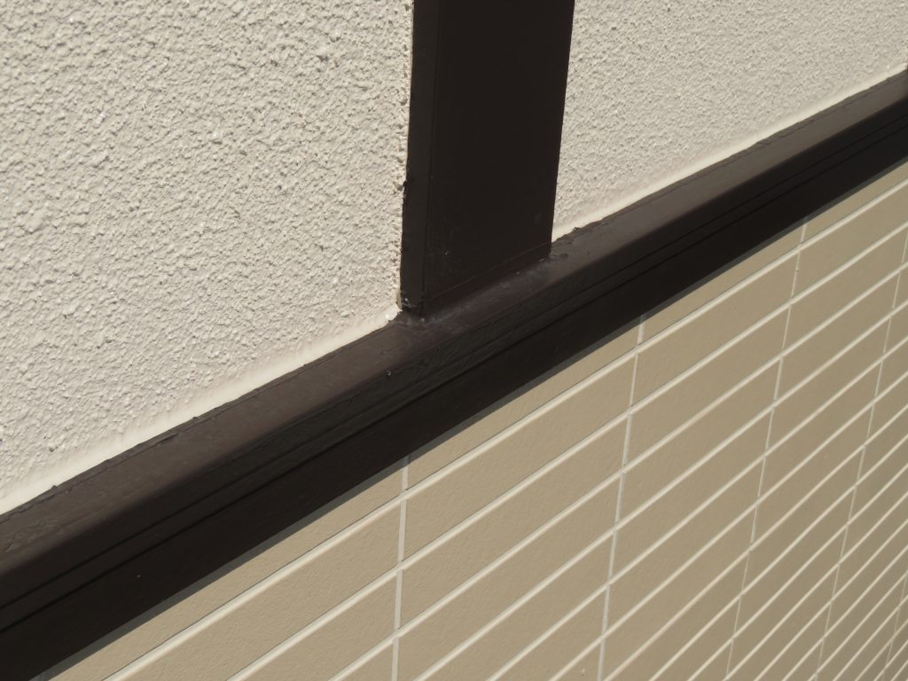 【外壁やシーリング・現在】2色使いの外壁の塗膜には、剥がれなどの異常なし。シーリングについても劣化などの異常は見受けられませんでした。