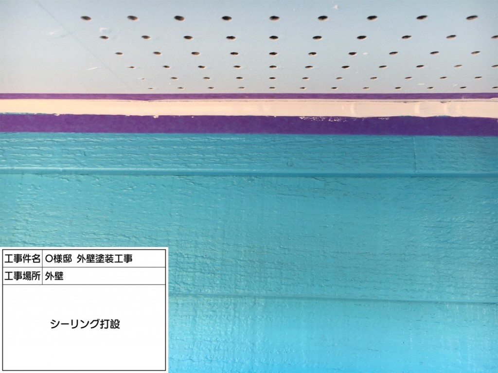 洗浄が終わるとシーリング(コーキング)打設工事です。専用プライマーを塗ってシーリング(コーキング)をたっぷりと打設していきます。