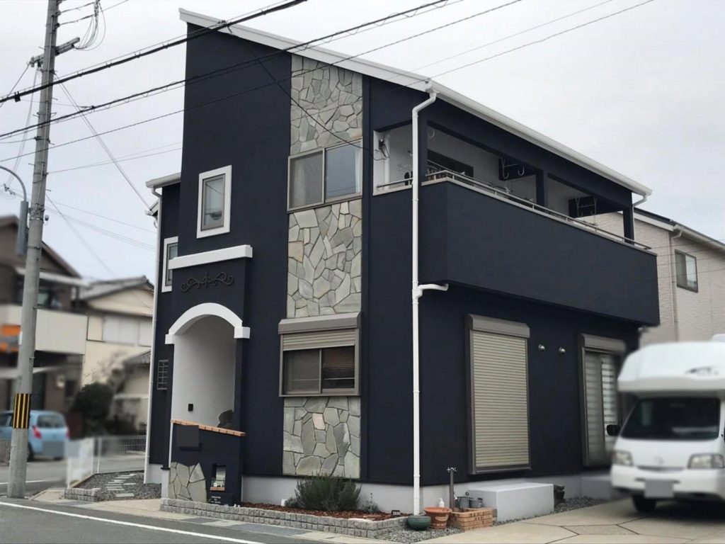 外壁色替え2回目。黒色の壁に、白色がアクセントカラーとなり、上品な組み合わせです。