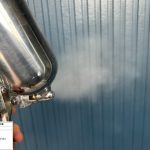 インラッシュコートG+を全体に吹き付け塗装します。光触媒を利用した防カビ・抗菌塗料です。