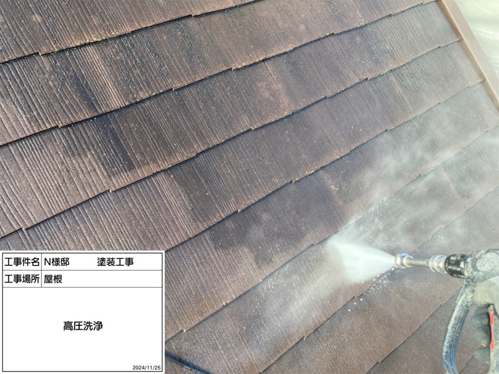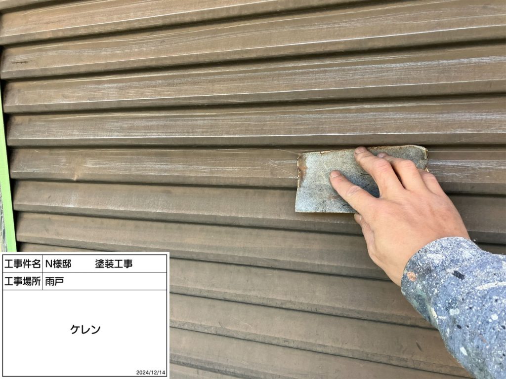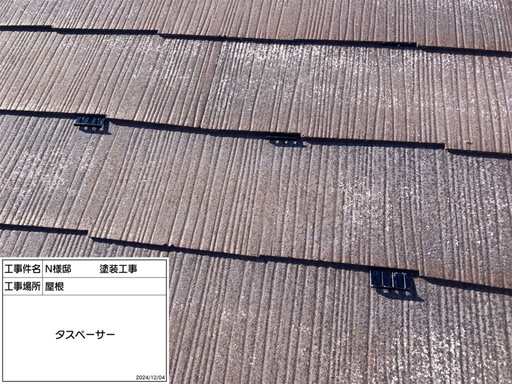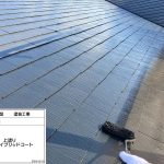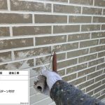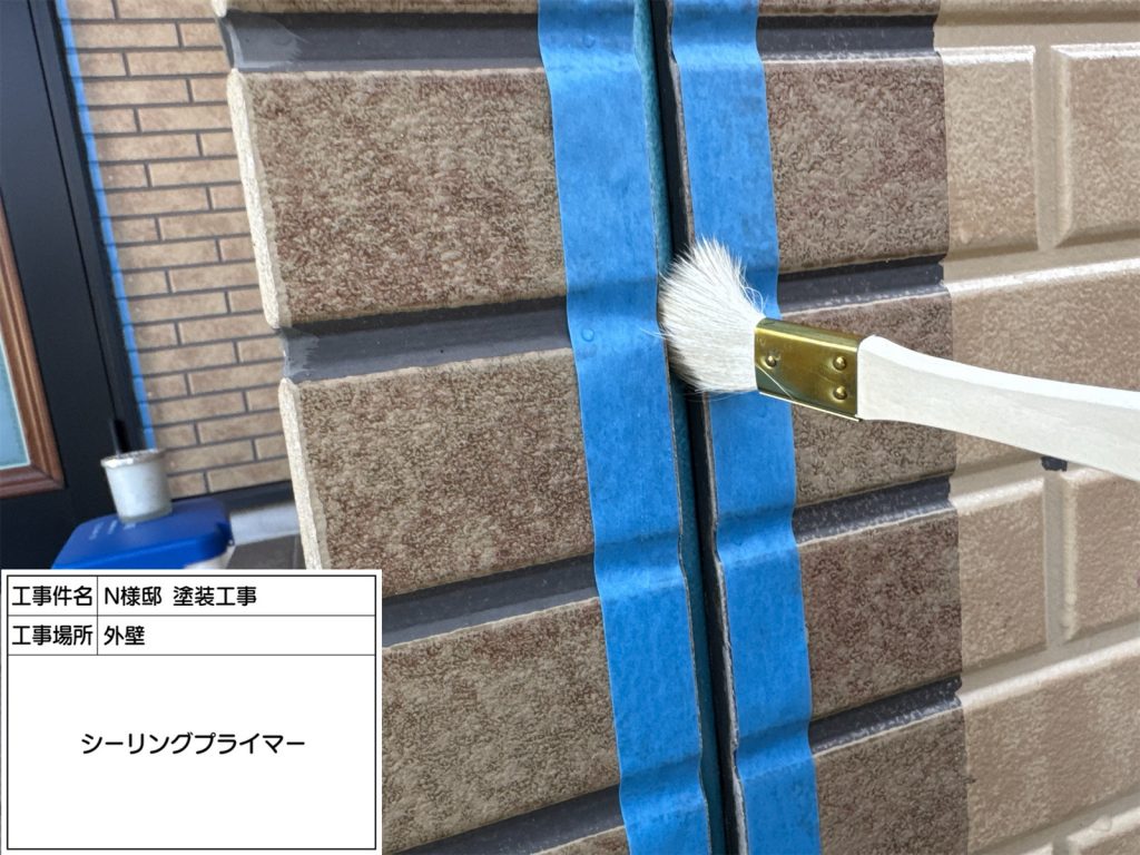 ↓ 下塗りを塗っています。現状の目地の色は、濃い茶系ですね。