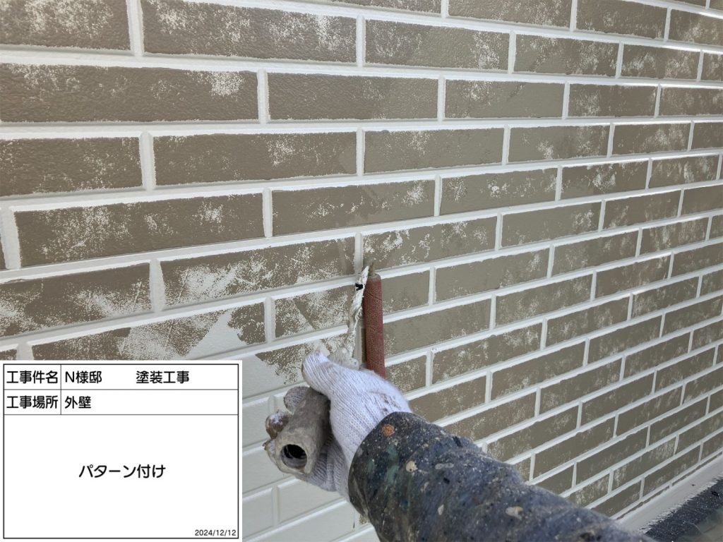 レンガ調の風合いを残しつつも、今回は目地部分の色をホワイト系で塗装したので、現状とは違った雰囲気に仕上がっております!