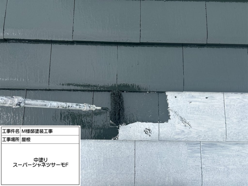 中塗りと上塗りに、スーパーシャネツサーモFを使用します。強い日差しにも負けない“遮熱性”と“耐候性”を兼ね備えたフッ素塗料です。