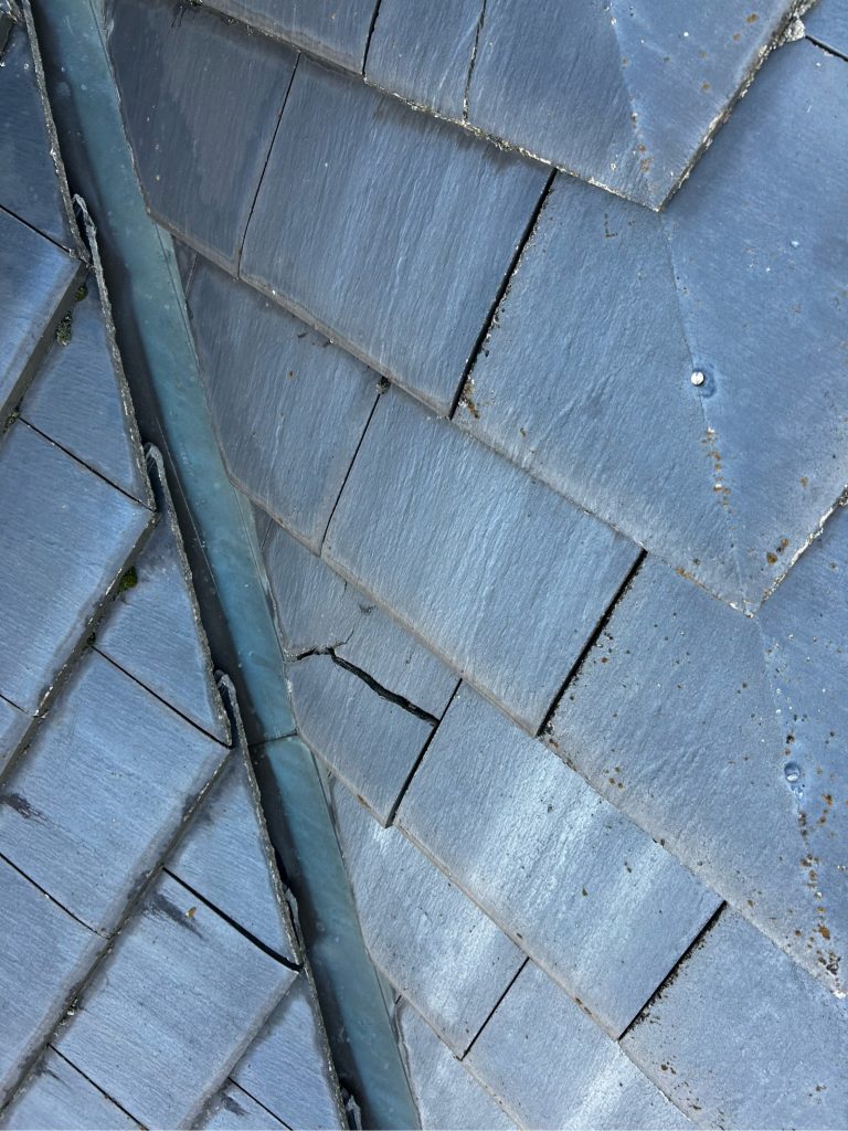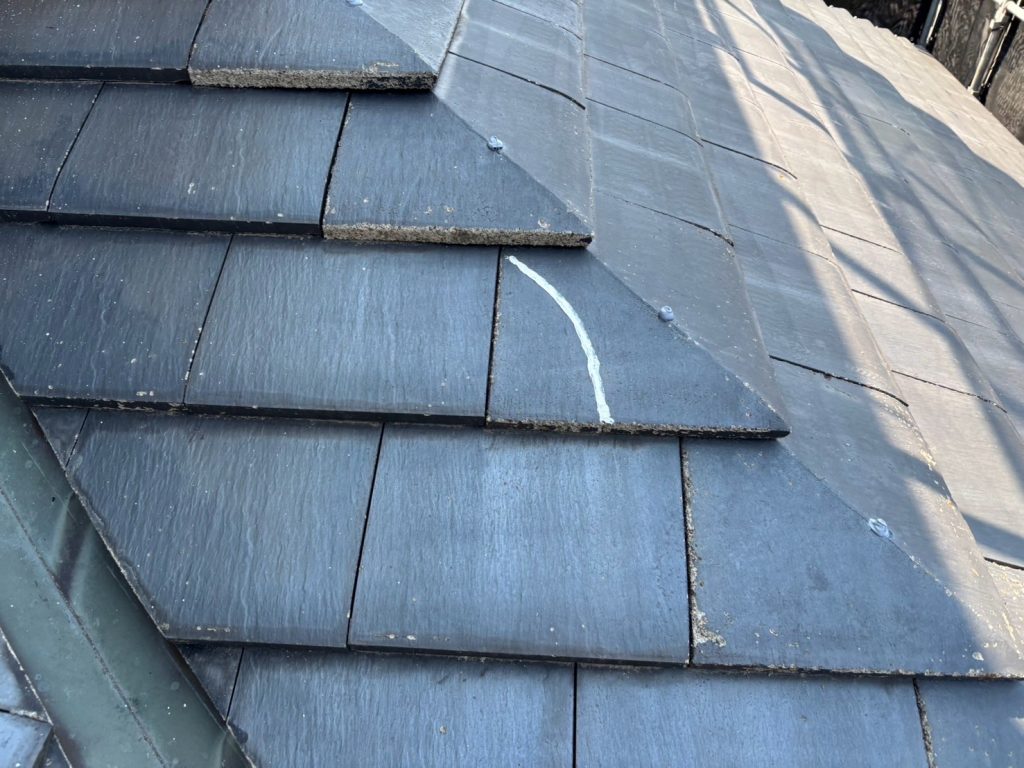 割れている瓦については撤去して、新しい瓦に差し替えています。また、ビスの浮き上がりは打ち直しを行い、コーキングを充填してしっかりと固定し、浮き上がりを防止しました。