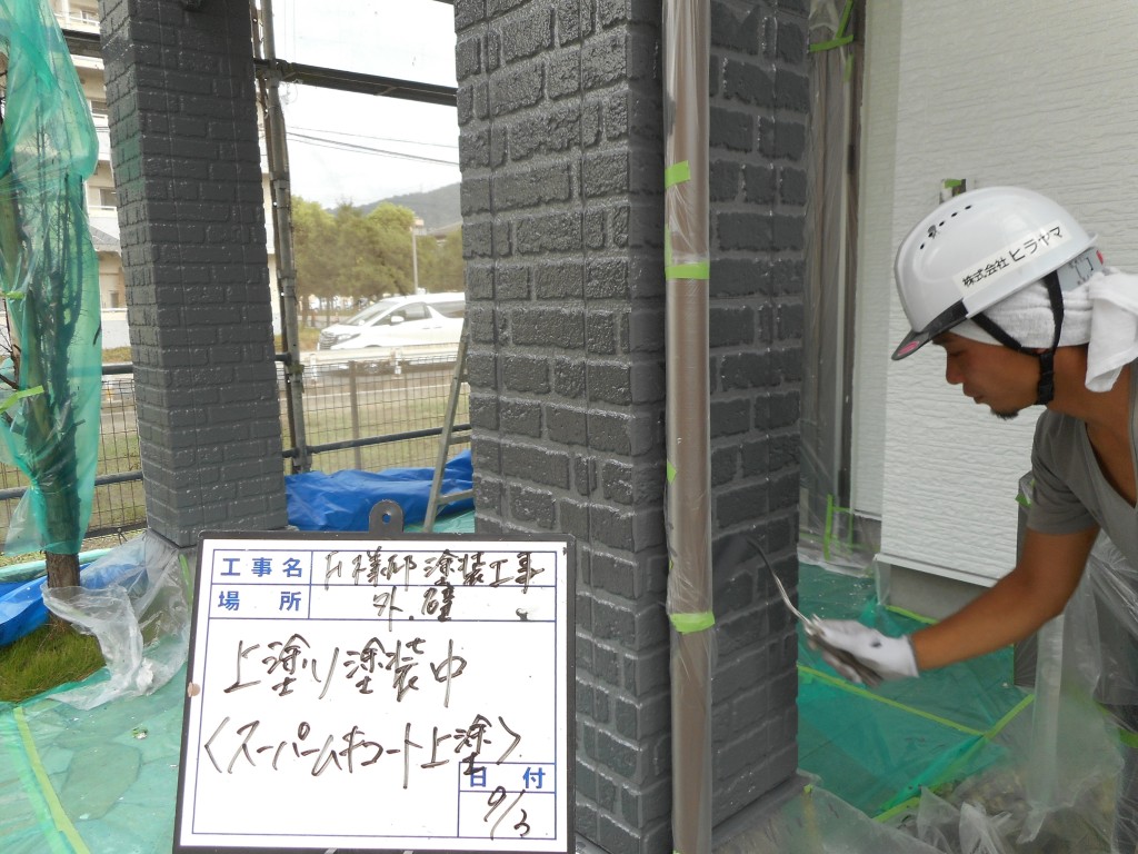 外壁の上塗り塗装中です。(3回目工程) こちらは外壁が白色部分です。